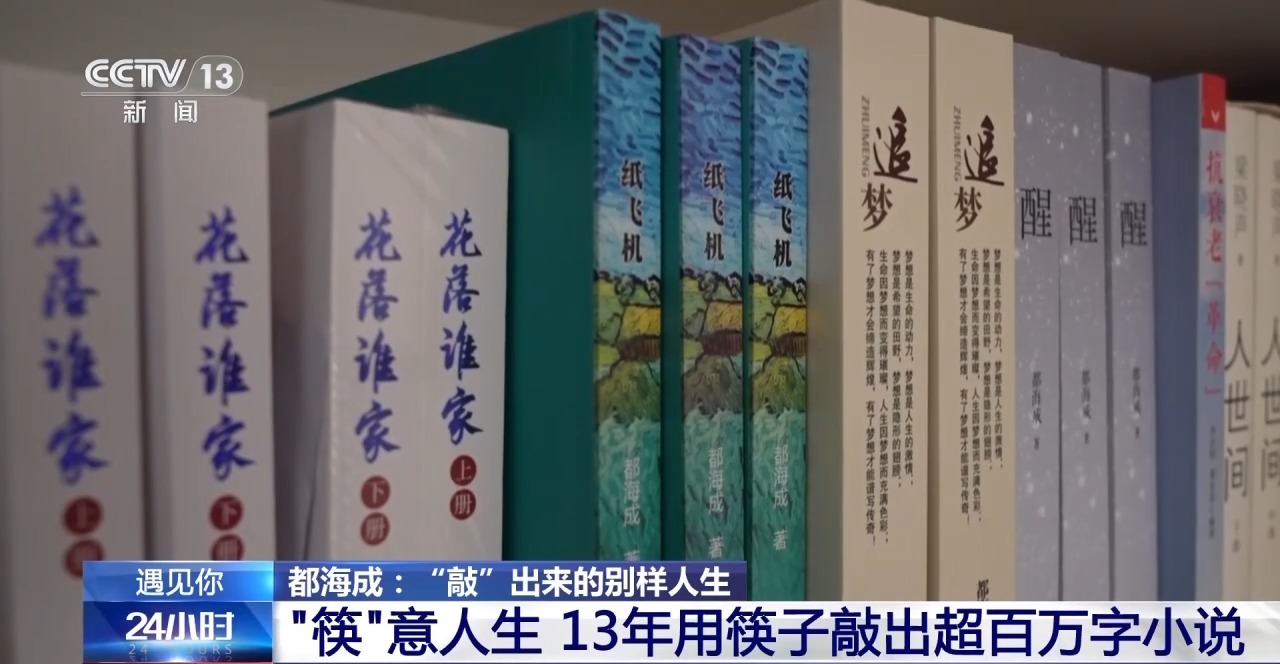 自此都海成正式开始写作,他学着用筷子在电脑上敲字,13年来,他用筷子敲出了超百万字小说。