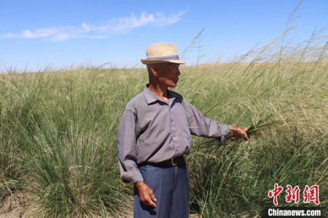“能打出草来,说明草场的生态好。这么多草,以前根本不敢想。”旺吉拉今年75岁,是内蒙古自治区锡林郭勒盟苏尼特右旗桑宝拉格苏木宝日温都尔嘎查牧民,他家的万余亩草场是典型荒漠化草场,都在浑善达克沙地中。